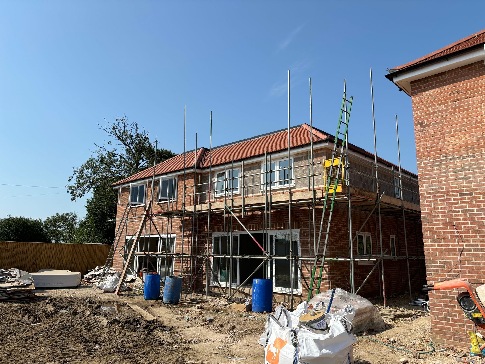 Installing Terreal Rully, Clay interlocking Tiles to appease local planning authority and Completing Flat Roof coverings with Signature Fully Bonded Felt system with GRP Trims to Roof perimeters